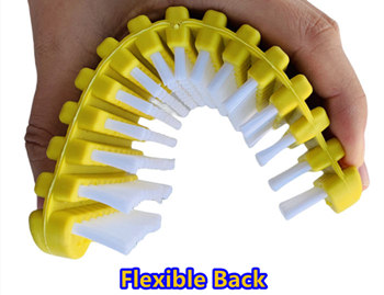 During production, the rubber back is injection molded first, then the bristles are inserted into the base. Finally, the surface of the bristles is trimmed evenly, so all bristles are at the same height.