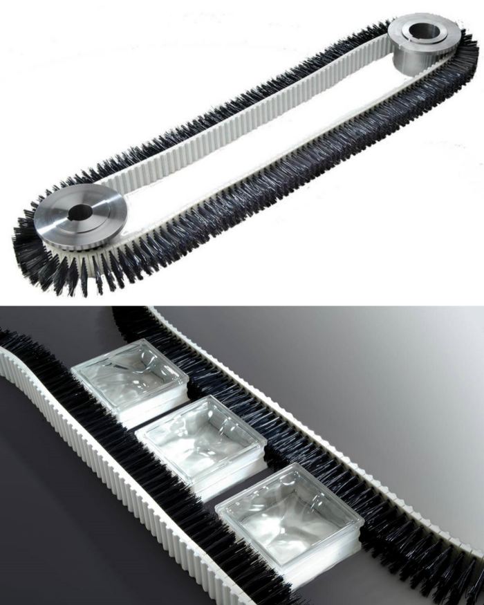 Onze getande distributieriemborstel met PU-nokken kan op standaard getande poelies worden gemonteerd en gedraaid voor vele toepassingen.